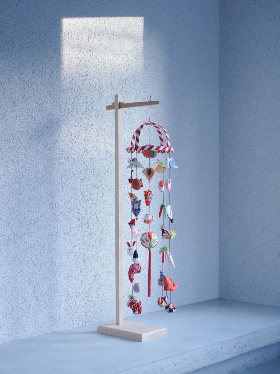 もも屋のつるし飾りは、謂れを大切にモチーフを決め展開しています。大きさや飾りの数、色の配置まで丁寧に設計し、近くで見ても、少し離れて眺めても美しく感じられることを大切にしています。