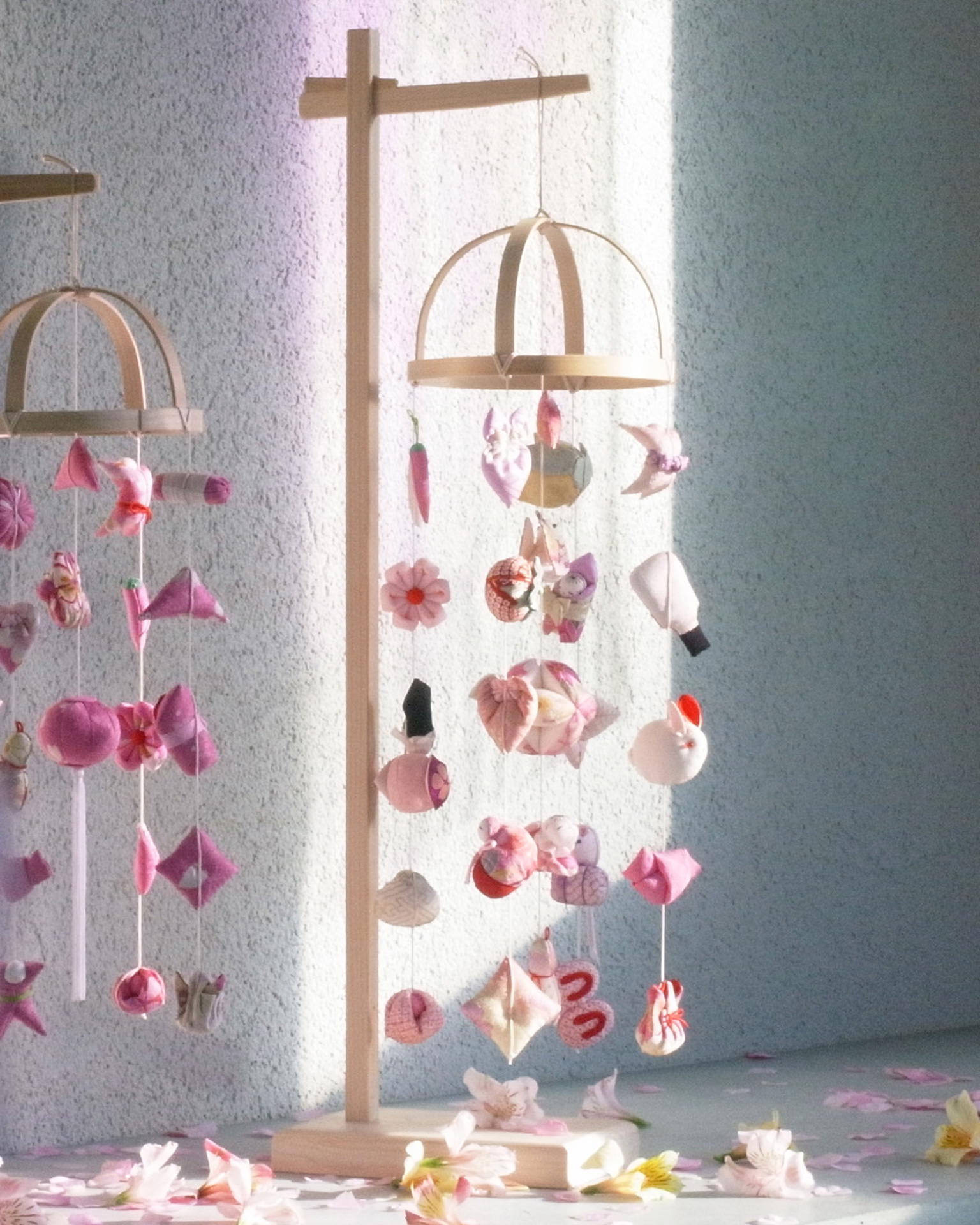 光桃Pは小ぶりなつるし飾りですが、その作りに妥協はありません。丁寧に手縫いされた飾りたちは、ひとつひとつが愛らしく、温もりにあふれています。桃の花や縁起の良い小物をモチーフに、ピンクを主軸としたやさしい色合いでまとめました。控えめでありながら、長く眺めていたくなる存在感があります。